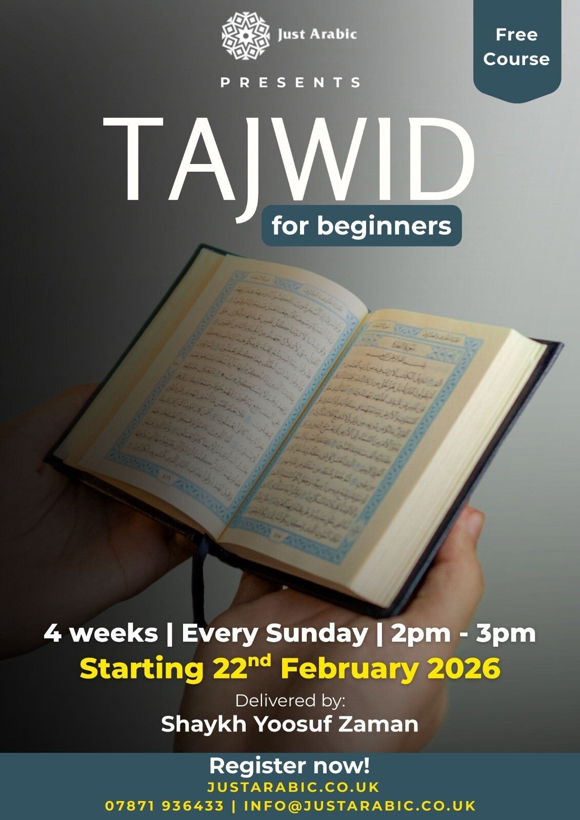 Cut through the noise of online misinformation. At Just Arabic, we offer structured and reliable education in Islamic sciences and Arabic through our continuously updated free courses—taught by verified scholars and qualified instructors. Learn effectively with a source you can trust.